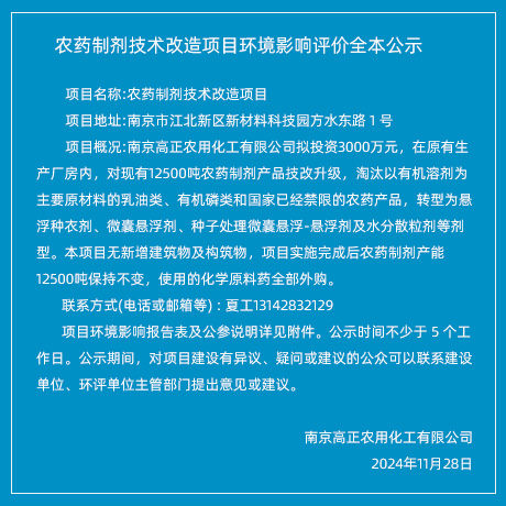 定將現(xiàn)有項目整體搬遷至江蘇省如東沿海經(jīng)濟(jì)開發(fā)區(qū)。搬遷完成后,將形成年產(chǎn)1000噸戊唑醇、200噸吡丙醚、500噸噻蟲啉、200噸環(huán)丙唑醇原藥的生產(chǎn)規(guī)模... |